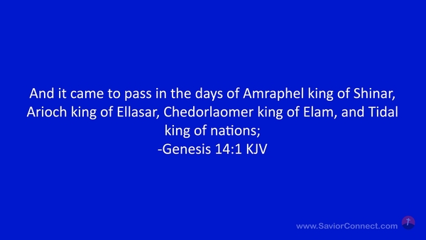 And it came to pass in the days of Amraphel king of Shinar, Arioch king of Ellasar, Chedorlaomer king of Elam, and Tidal king of nations; -Genesis 14:1 KJV
