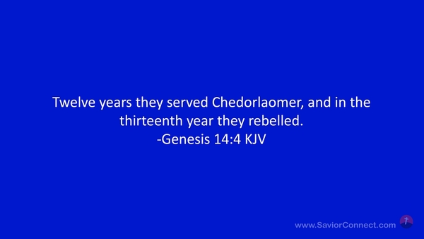 Twelve years they served Chedorlaomer, and in the thirteenth year they rebelled. -Genesis 14:4 KJV