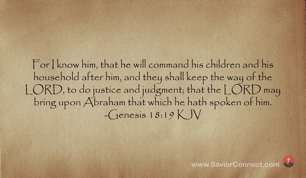 For I know him, that he will command his children and his household after him, and they shall keep the way of the LORD, to do justice and judgment; that the LORD may bring upon Abraham that which he hath spoken of him. -Genesis 18:19 KJV