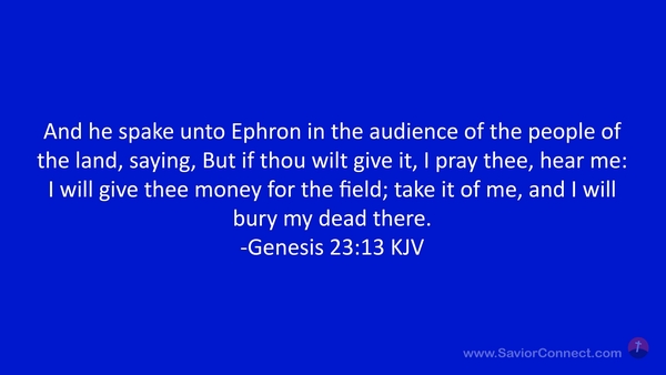 And he spake unto Ephron in the audience of the people of the land, saying, But if thou wilt give it, I pray thee, hear me: I will give thee money for the field; take it of me, and I will bury my dead there. -Genesis 23:13 KJV
