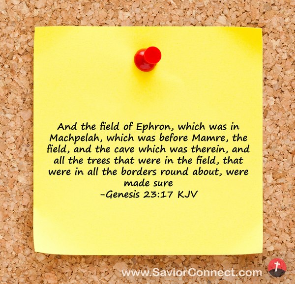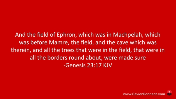And the field of Ephron, which was in Machpelah, which was before Mamre, the field, and the cave which was therein, and all the trees that were in the field, that were in all the borders round about, were made sure -Genesis 23:17 KJV