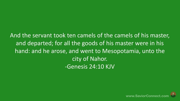 And the servant took ten camels of the camels of his master, and departed; for all the goods of his master were in his hand: and he arose, and went to Mesopotamia, unto the city of Nahor. -Genesis 24:10 KJV