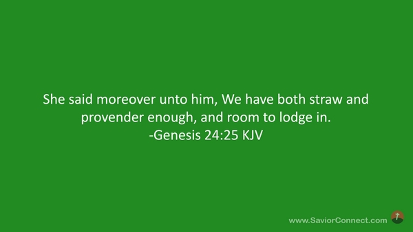 She said moreover unto him, We have both straw and provender enough, and room to lodge in. -Genesis 24:25 KJV