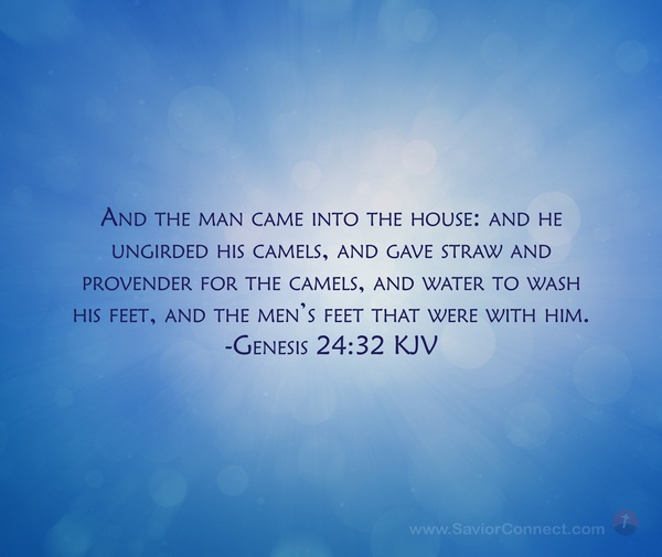 And the man came into the house: and he ungirded his camels, and gave straw and provender for the camels, and water to wash his feet, and the men's feet that were with him. -Genesis 24:32 KJV