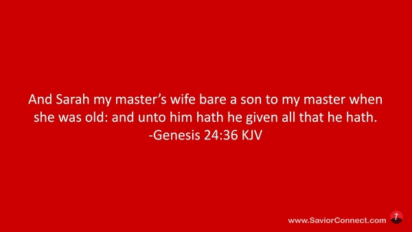 And Sarah my master's wife bare a son to my master when she was old: and unto him hath he given all that he hath. -Genesis 24:36 KJV