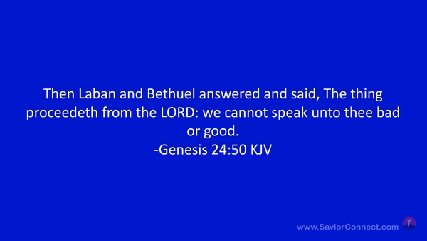 Then Laban and Bethuel answered and said, The thing proceedeth from the LORD: we cannot speak unto thee bad or good. -Genesis 24:50 KJV