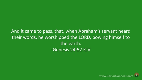 And it came to pass, that, when Abraham's servant heard their words, he worshipped the LORD, bowing himself to the earth. -Genesis 24:52 KJV