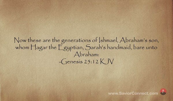 Now these are the generations of Ishmael, Abraham's son, whom Hagar the Egyptian, Sarah's handmaid, bare unto Abraham: -Genesis 25:12 KJV