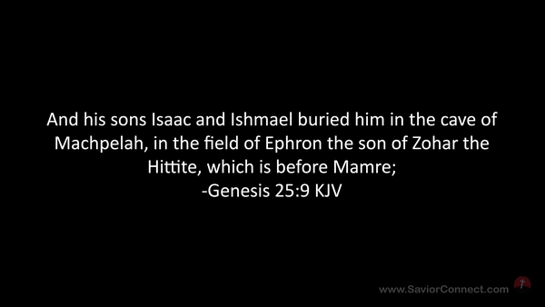And his sons Isaac and Ishmael buried him in the cave of Machpelah, in the field of Ephron the son of Zohar the Hittite, which is before Mamre; -Genesis 25:9 KJV