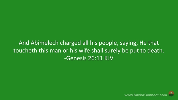 And Abimelech charged all his people, saying, He that toucheth this man or his wife shall surely be put to death. -Genesis 26:11 KJV