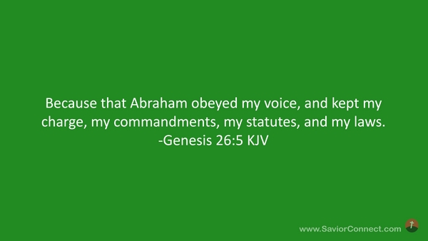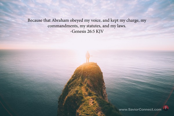 Because that Abraham obeyed my voice, and kept my charge, my commandments, my statutes, and my laws. -Genesis 26:5 KJV