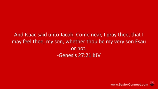 And Isaac said unto Jacob, Come near, I pray thee, that I may feel thee, my son, whether thou be my very son Esau or not. -Genesis 27:21 KJV