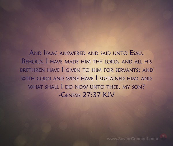 And Isaac answered and said unto Esau, Behold, I have made him thy lord, and all his brethren have I given to him for servants; and with corn and wine have I sustained him: and what shall I do now unto thee, my son? -Genesis 27:37 KJV