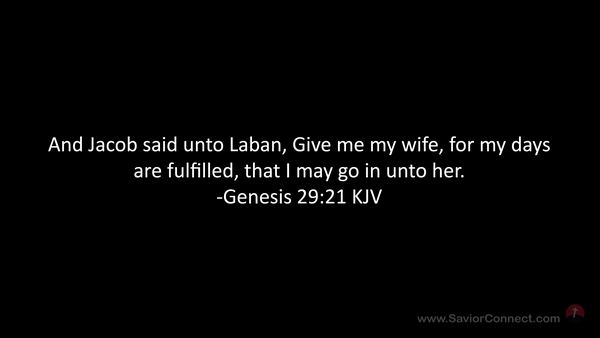 And Jacob said unto Laban, Give me my wife, for my days are fulfilled, that I may go in unto her. -Genesis 29:21 KJV