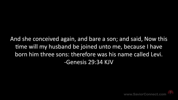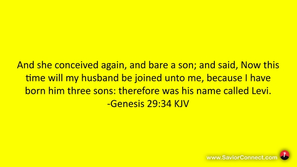 And she conceived again, and bare a son; and said, Now this time will my husband be joined unto me, because I have born him three sons: therefore was his name called Levi. -Genesis 29:34 KJV