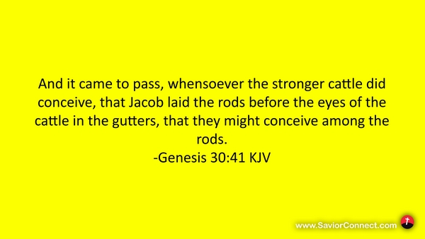 And it came to pass, whensoever the stronger cattle did conceive, that Jacob laid the rods before the eyes of the cattle in the gutters, that they might conceive among the rods. -Genesis 30:41 KJV