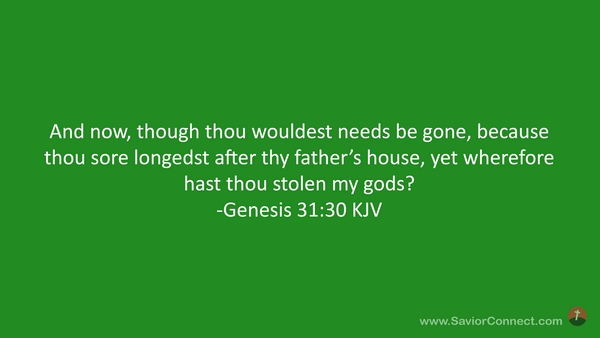 And now, though thou wouldest needs be gone, because thou sore longedst after thy father's house, yet wherefore hast thou stolen my gods? -Genesis 31:30 KJV