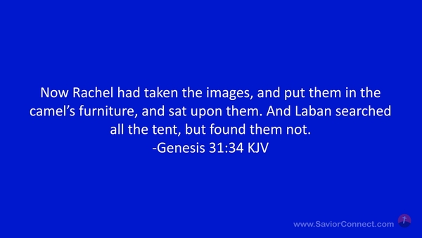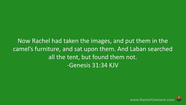 Now Rachel had taken the images, and put them in the camel's furniture, and sat upon them. And Laban searched all the tent, but found them not. -Genesis 31:34 KJV