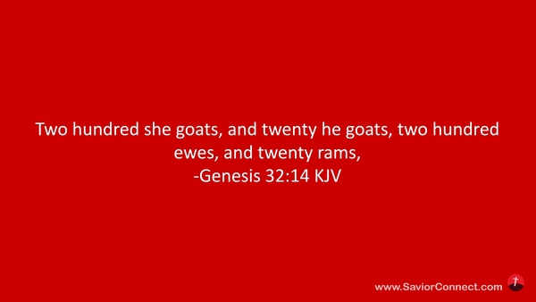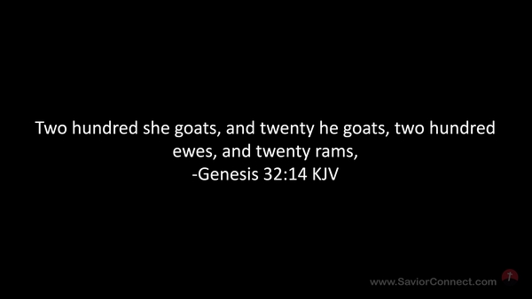 Two hundred she goats, and twenty he goats, two hundred ewes, and twenty rams, -Genesis 32:14 KJV