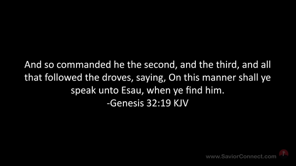 And so commanded he the second, and the third, and all that followed the droves, saying, On this manner shall ye speak unto Esau, when ye find him. -Genesis 32:19 KJV