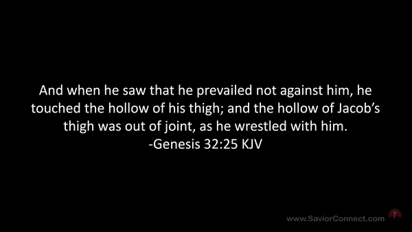 And when he saw that he prevailed not against him, he touched the hollow of his thigh; and the hollow of Jacob's thigh was out of joint, as he wrestled with him. -Genesis 32:25 KJV