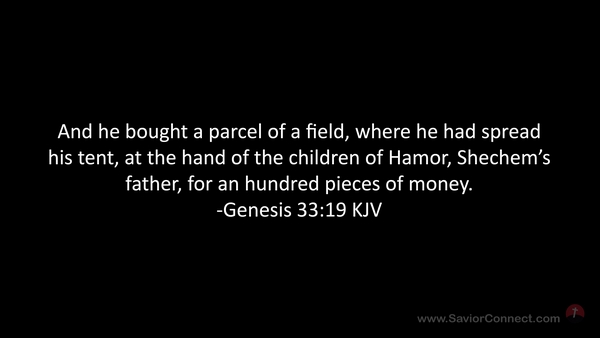 And he bought a parcel of a field, where he had spread his tent, at the hand of the children of Hamor, Shechem's father, for an hundred pieces of money. -Genesis 33:19 KJV