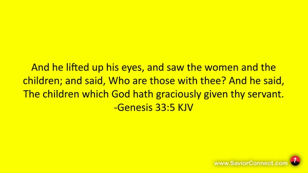 And he lifted up his eyes, and saw the women and the children; and said, Who are those with thee? And he said, The children which God hath graciously given thy servant. -Genesis 33:5 KJV