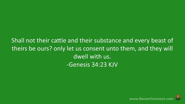 Shall not their cattle and their substance and every beast of theirs be ours? only let us consent unto them, and they will dwell with us. -Genesis 34:23 KJV