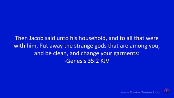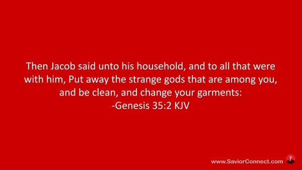 Then Jacob said unto his household, and to all that were with him, Put away the strange gods that are among you, and be clean, and change your garments: -Genesis 35:2 KJV
