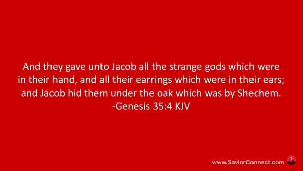 And they gave unto Jacob all the strange gods which were in their hand, and all their earrings which were in their ears; and Jacob hid them under the oak which was by Shechem. -Genesis 35:4 KJV