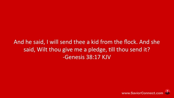 And he said, I will send thee a kid from the flock. And she said, Wilt thou give me a pledge, till thou send it? -Genesis 38:17 KJV