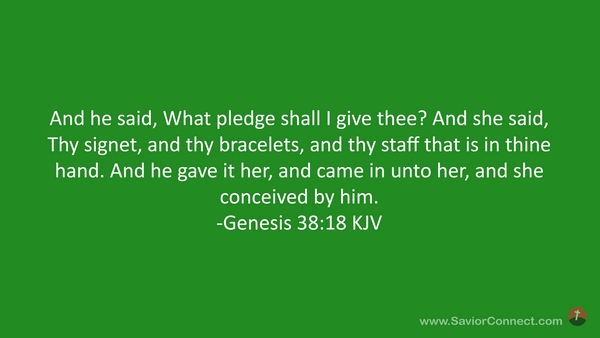 And he said, What pledge shall I give thee? And she said, Thy signet, and thy bracelets, and thy staff that is in thine hand. And he gave it her, and came in unto her, and she conceived by him. -Genesis 38:18 KJV