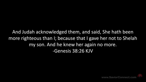 And Judah acknowledged them, and said, She hath been more righteous than I; because that I gave her not to Shelah my son. And he knew her again no more. -Genesis 38:26 KJV