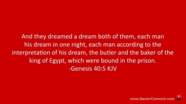 And they dreamed a dream both of them, each man his dream in one night, each man according to the interpretation of his dream, the butler and the baker of the king of Egypt, which were bound in the prison. -Genesis 40:5 KJV