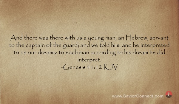 And there was there with us a young man, an Hebrew, servant to the captain of the guard; and we told him, and he interpreted to us our dreams; to each man according to his dream he did interpret. -Genesis 41:12 KJV