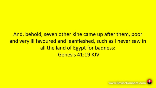 And, behold, seven other kine came up after them, poor and very ill favoured and leanfleshed, such as I never saw in all the land of Egypt for badness: -Genesis 41:19 KJV