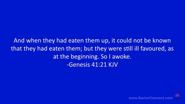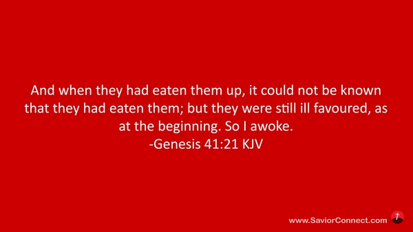 And when they had eaten them up, it could not be known that they had eaten them; but they were still ill favoured, as at the beginning. So I awoke. -Genesis 41:21 KJV