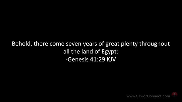 Behold, there come seven years of great plenty throughout all the land of Egypt: -Genesis 41:29 KJV