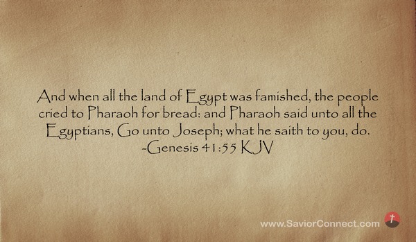 And when all the land of Egypt was famished, the people cried to Pharaoh for bread: and Pharaoh said unto all the Egyptians, Go unto Joseph; what he saith to you, do. -Genesis 41:55 KJV