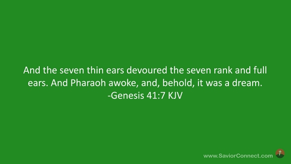 And the seven thin ears devoured the seven rank and full ears. And Pharaoh awoke, and, behold, it was a dream. -Genesis 41:7 KJV