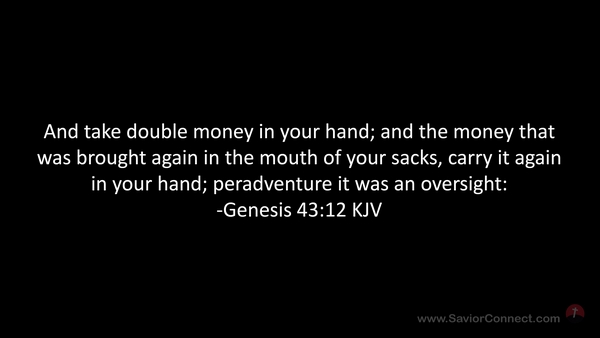 And take double money in your hand; and the money that was brought again in the mouth of your sacks, carry it again in your hand; peradventure it was an oversight: -Genesis 43:12 KJV