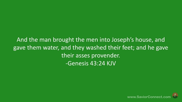 And the man brought the men into Joseph's house, and gave them water, and they washed their feet; and he gave their asses provender. -Genesis 43:24 KJV