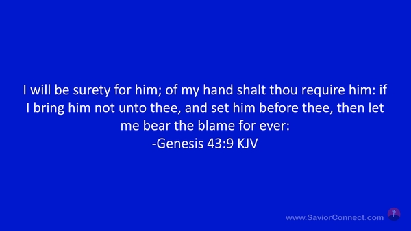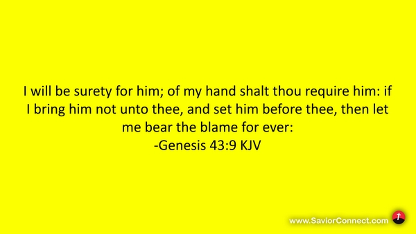 I will be surety for him; of my hand shalt thou require him: if I bring him not unto thee, and set him before thee, then let me bear the blame for ever: -Genesis 43:9 KJV