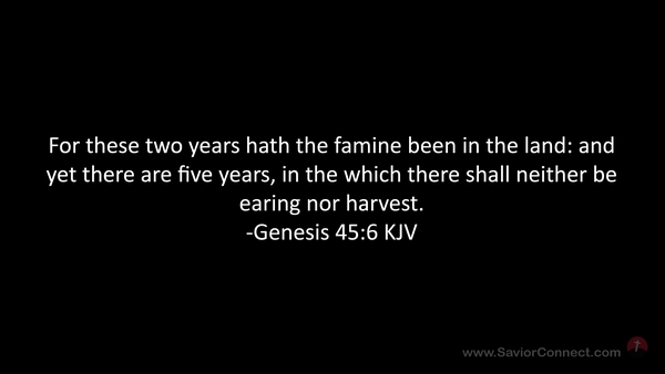 For these two years hath the famine been in the land: and yet there are five years, in the which there shall neither be earing nor harvest. -Genesis 45:6 KJV
