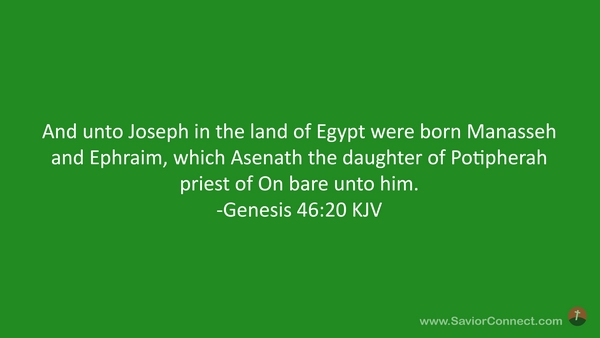 And unto Joseph in the land of Egypt were born Manasseh and Ephraim, which Asenath the daughter of Potipherah priest of On bare unto him. -Genesis 46:20 KJV