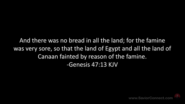 And there was no bread in all the land; for the famine was very sore, so that the land of Egypt and all the land of Canaan fainted by reason of the famine. -Genesis 47:13 KJV