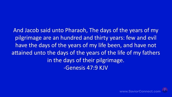 And Jacob said unto Pharaoh, The days of the years of my pilgrimage are an hundred and thirty years: few and evil have the days of the years of my life been, and have not attained unto the days of the years of the life of my fathers in the days of their pilgrimage. -Genesis 47:9 KJV