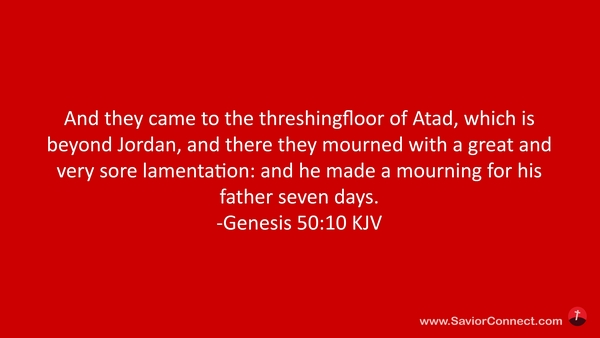 And they came to the threshingfloor of Atad, which is beyond Jordan, and there they mourned with a great and very sore lamentation: and he made a mourning for his father seven days. -Genesis 50:10 KJV