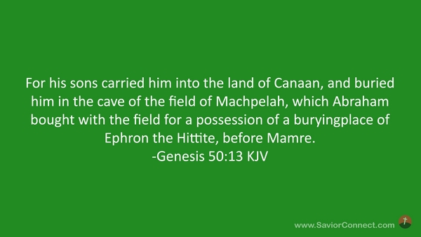 For his sons carried him into the land of Canaan, and buried him in the cave of the field of Machpelah, which Abraham bought with the field for a possession of a buryingplace of Ephron the Hittite, before Mamre. -Genesis 50:13 KJV