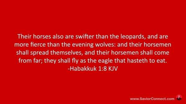 Their horses also are swifter than the leopards, and are more fierce than the evening wolves: and their horsemen shall spread themselves, and their horsemen shall come from far; they shall fly as the eagle that hasteth to eat. -Habakkuk 1:8 KJV